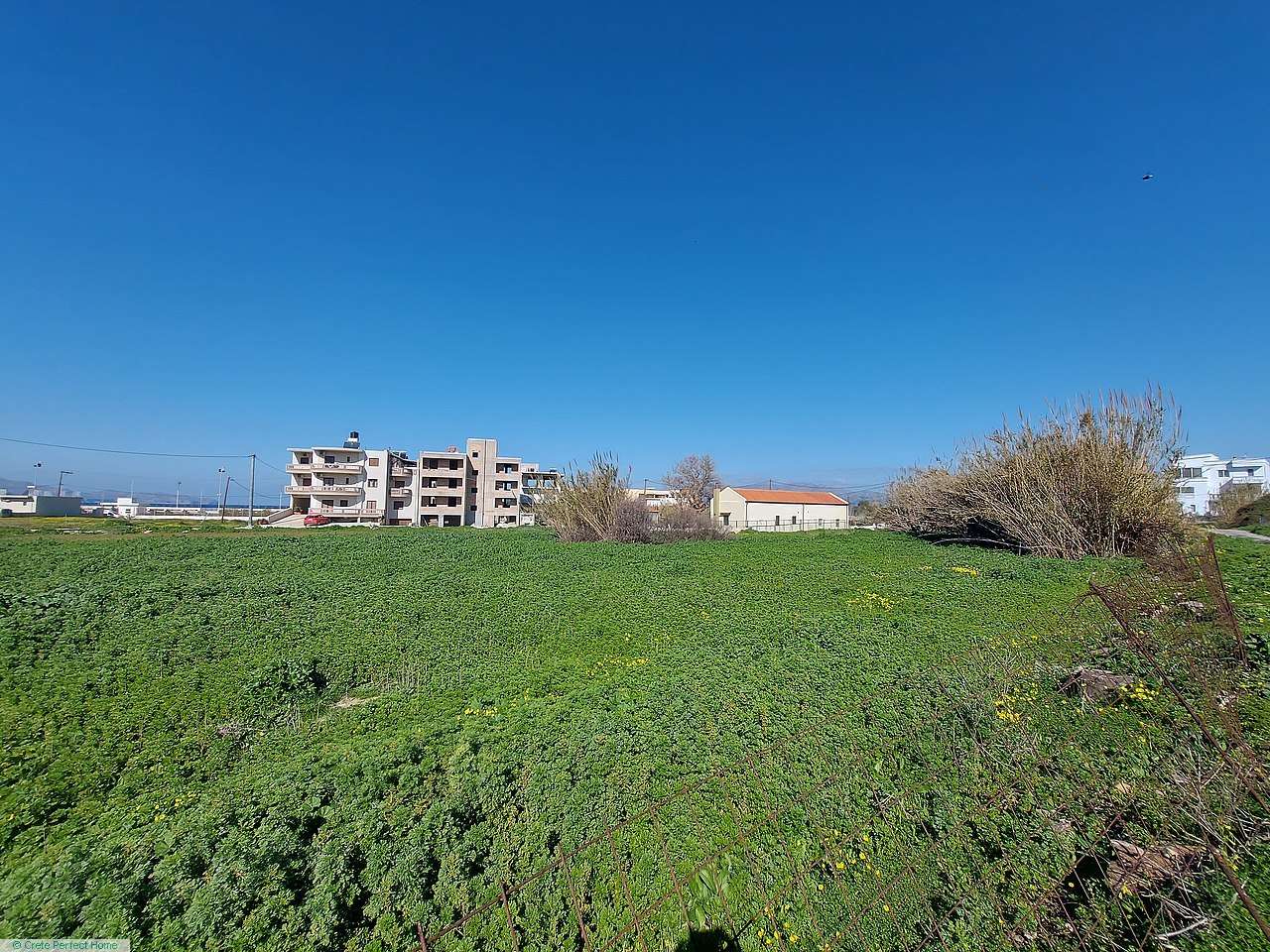 472m2 level plot in Kissamos town plan, 270m from beach, sea view, large build allowance, close to shops and facilities, 25 mins Chania, good road access, all services close by.
