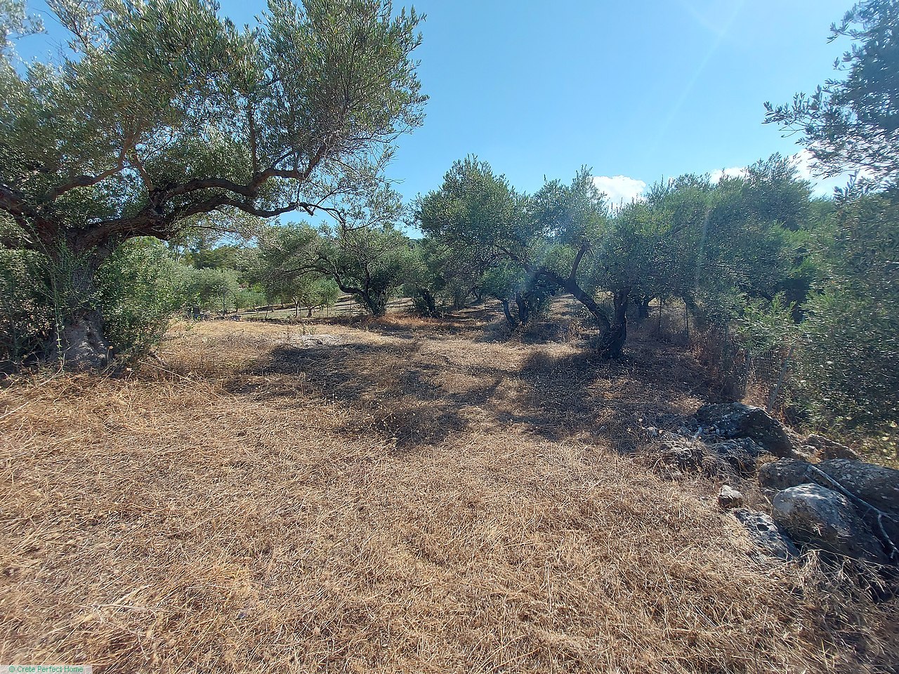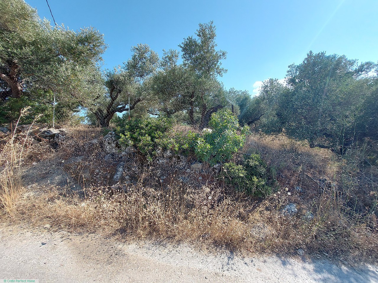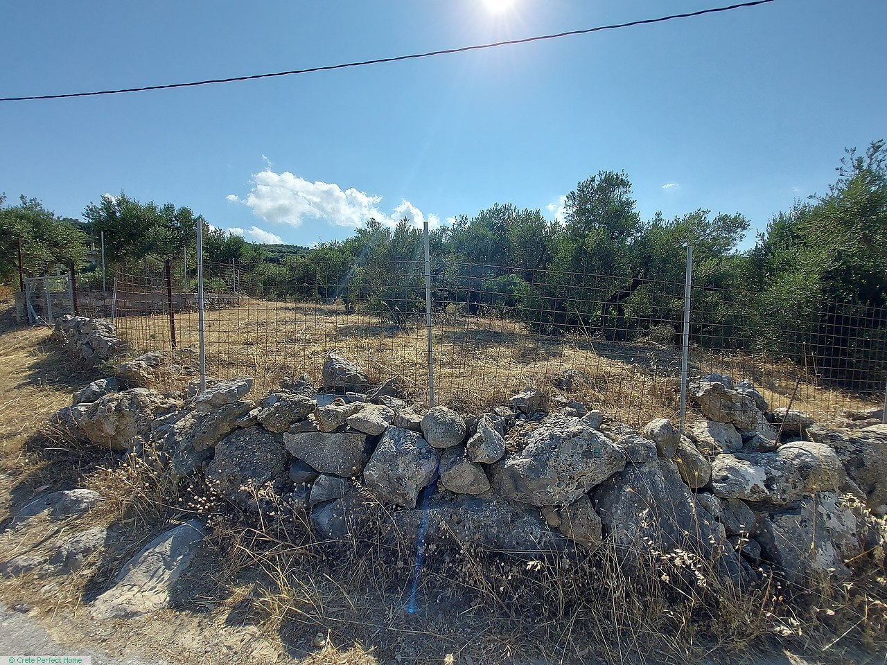 This tongue-shaped level plot is on the edge of a quiet elevated village only 6 minutes from shops and beaches at Kissamos, and 30 minutes from the bustling Venetian city of Chania.