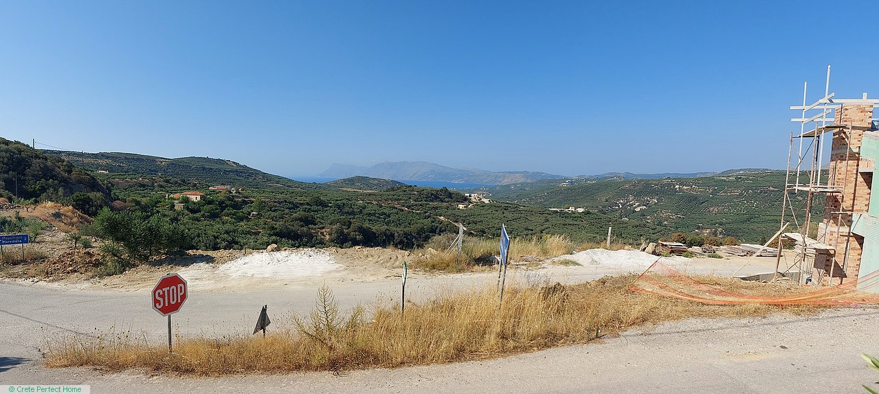 658m2 level plot in quiet elevated village, good build allowance, sea & rural views, 6 mins Kissamos, 30 mins Chania, good road access, all services close by.