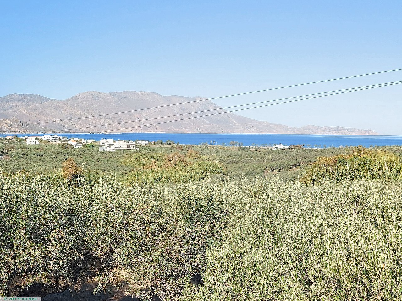 6,524m2 huge olive grove, panoramic sea views (first floor), 1500m Kissamos, 25 mins Chania, services close by, good road access.