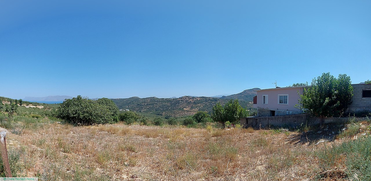 861m2 plot inside village, large build allowance, panoramic sea & rural views, 6 mins Kissamos, 30 mins Chania, good road access, services close by.