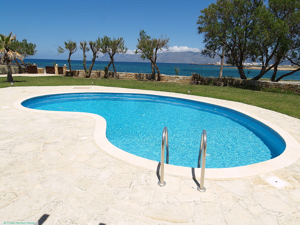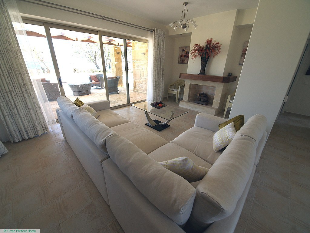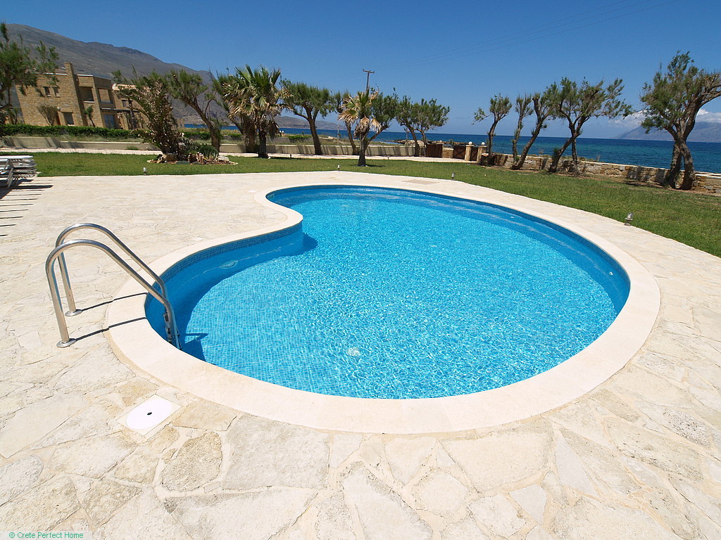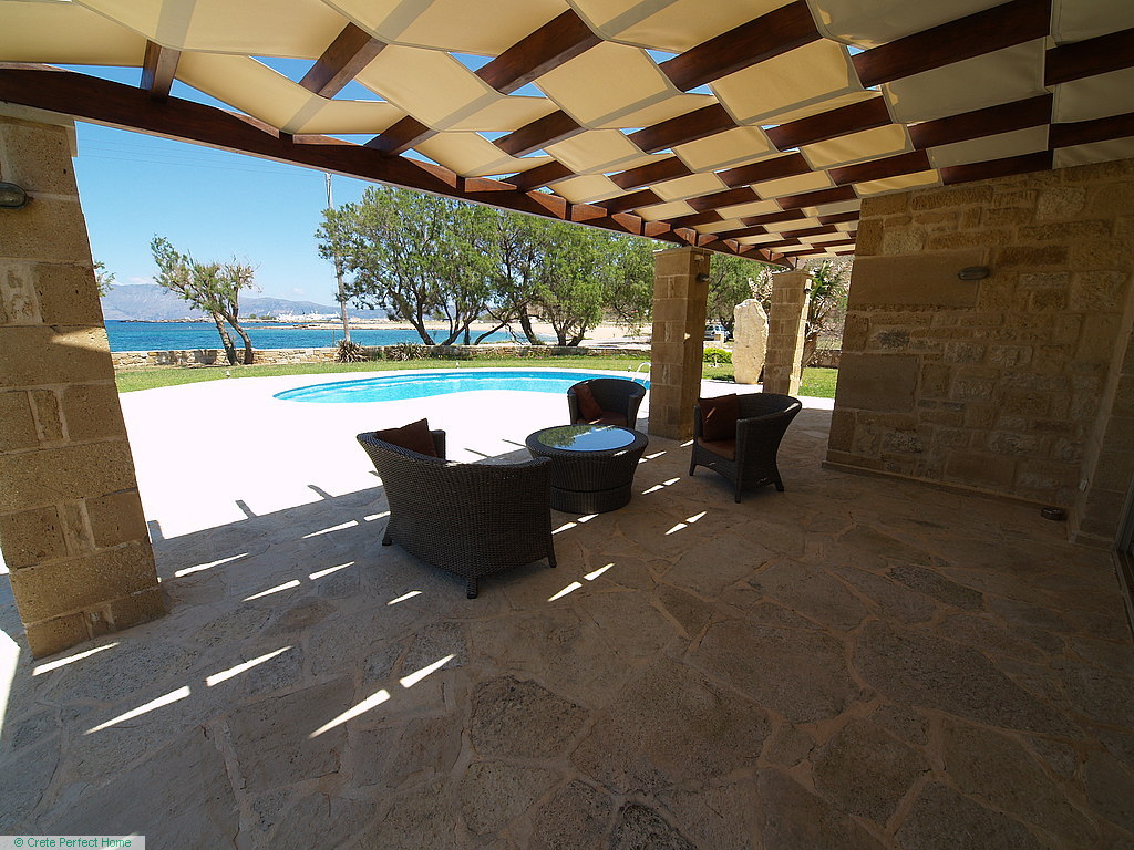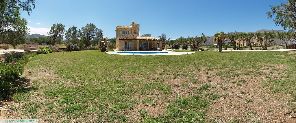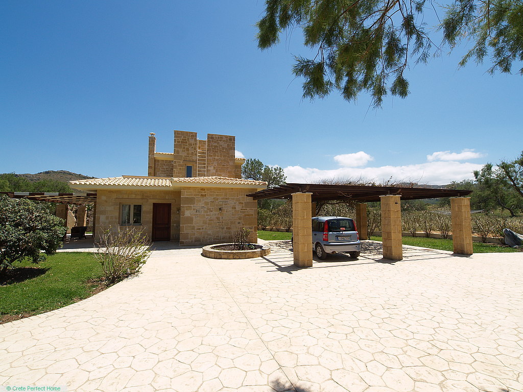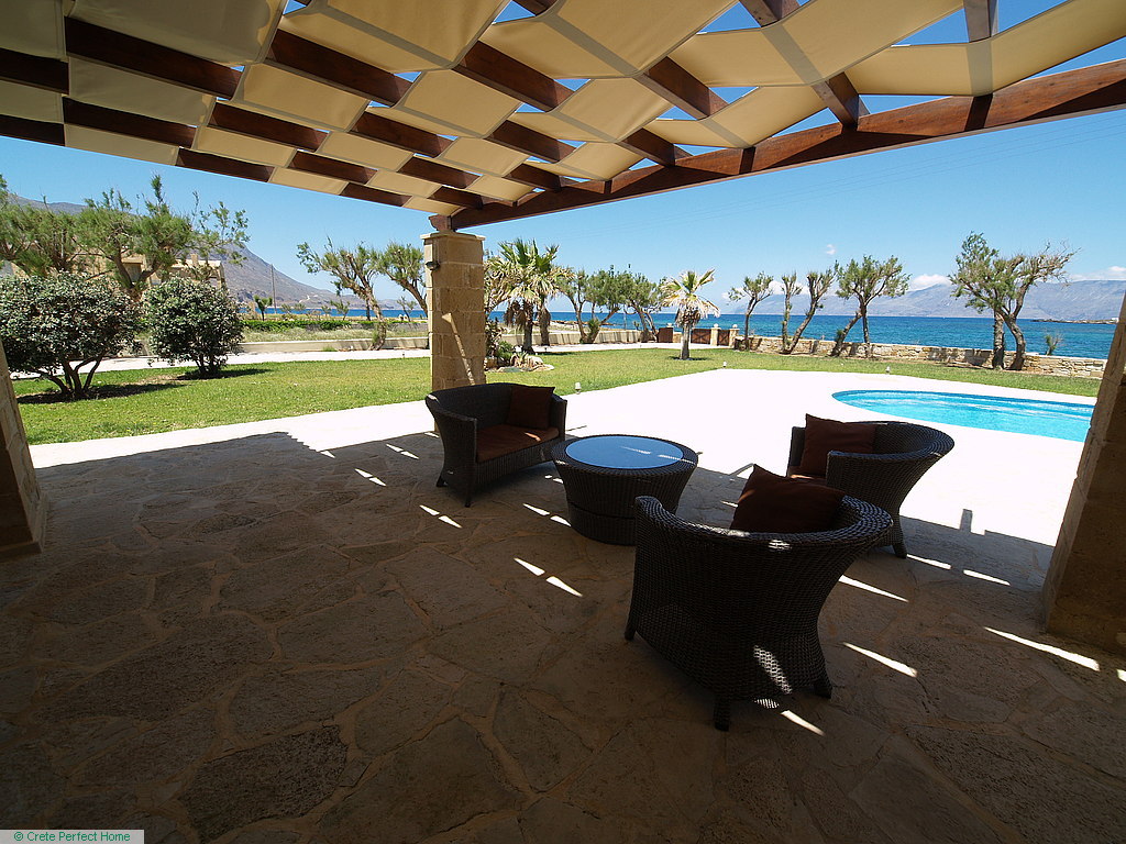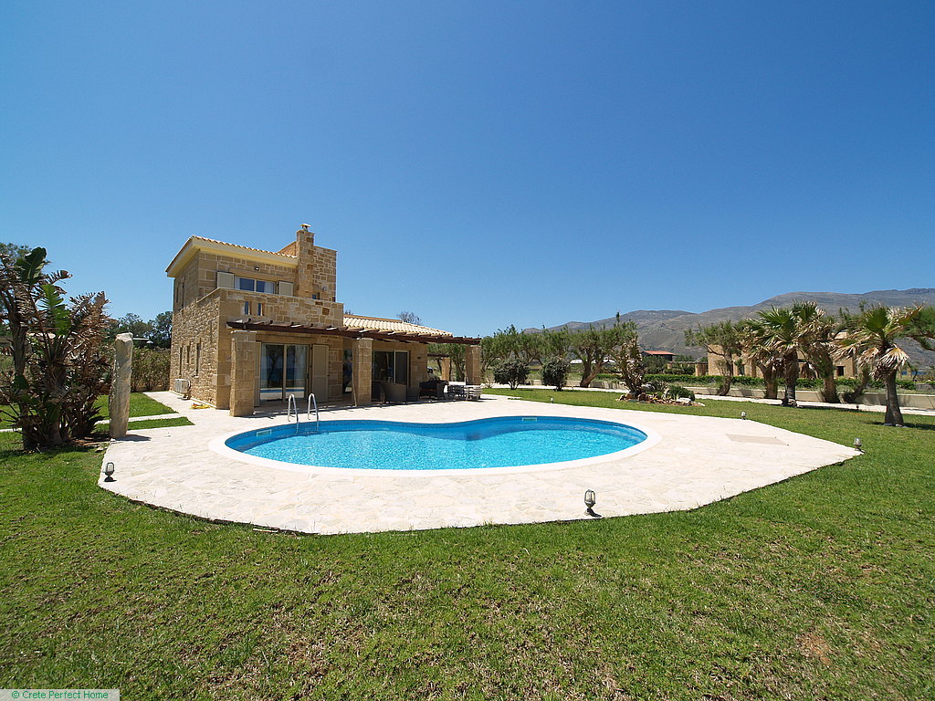 Gorgeous modern 146m2 stone-built villa in large beachside plot with swimming pool, 3 bedrooms & 3 bathrooms, 1,980m2 plot, fabulous sea views, 5 mins Kissamos, 30 mins Chania, all services connected.