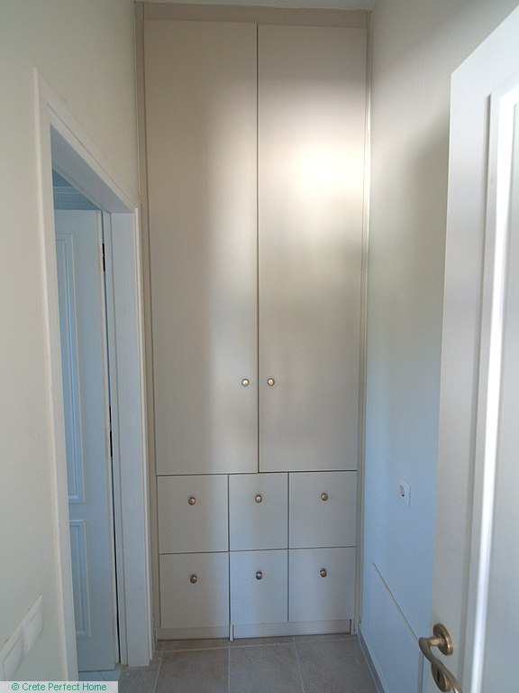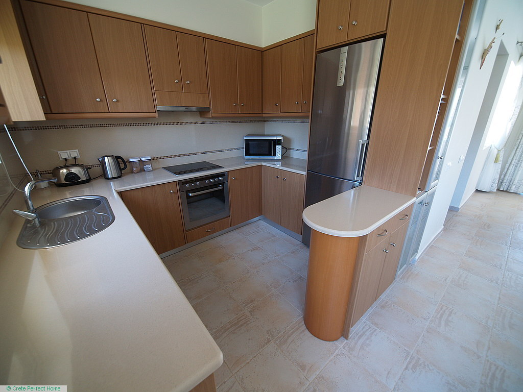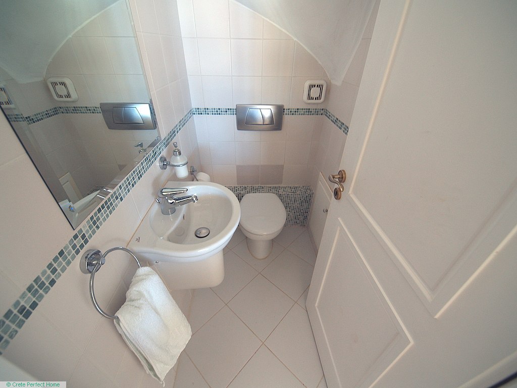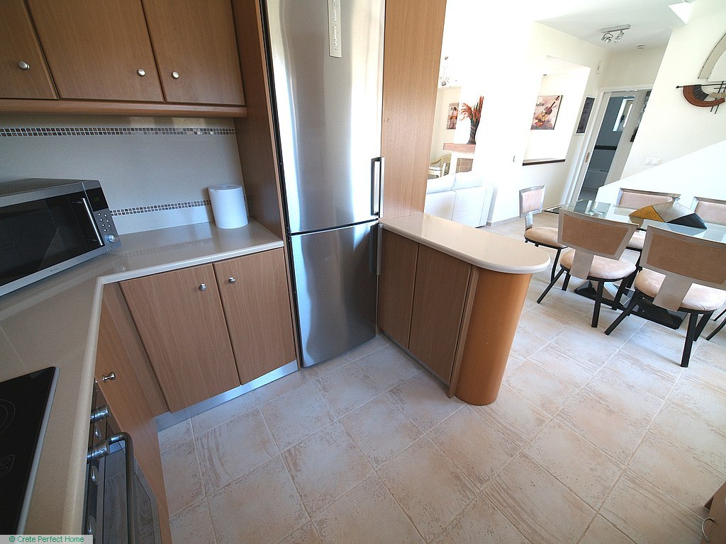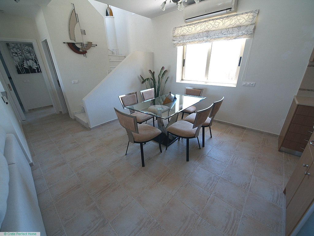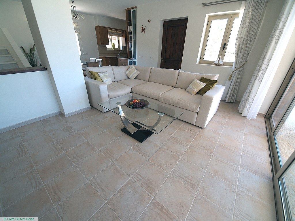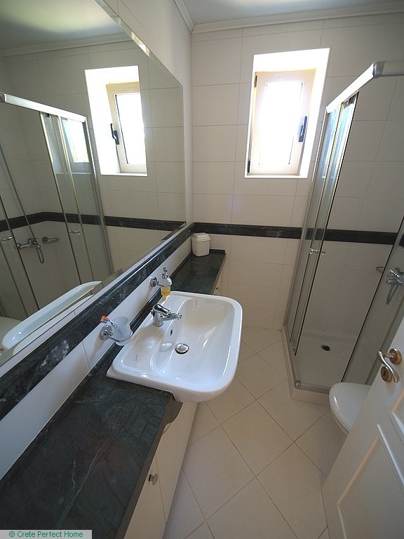 Luxurious white marble stairs lead up to the first floor, where the master bedroom is located. This bedroom has fitted wardrobes, a dressing room, and a roomy bathroom with shower, sink, WC, bidet, and further green marble features. There are also large glazed balcony doors which lead out onto a large balcony with superb views of the Gulf of Kissamos and the rugged mountainous peninsulas of Gramvousa and Rodopos.