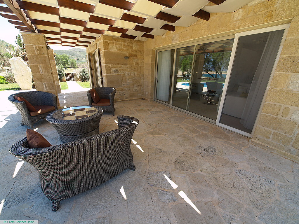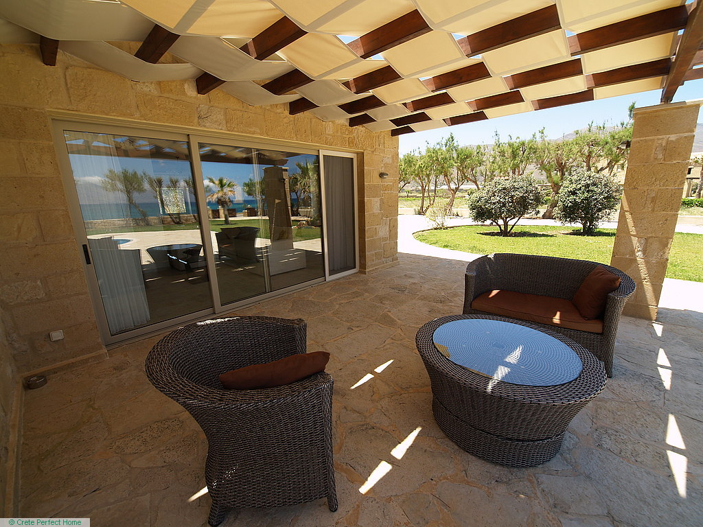 This gorgeous modern stone-built villa is literally just 15 metres from beautiful beaches and the turquoise waters of the Gulf of Kissamos. Located within 5 minutes of shops and beaches in Kissamos and 30 minutes from the bustling city of Chania, it is within easy reach of all facilities yet enjoys a quiet beachside location. It is also perfectly placed to sunbathe on the famous beaches of Balos, Falassarna and Elafonisi, and to walk the many gorges of western Crete.