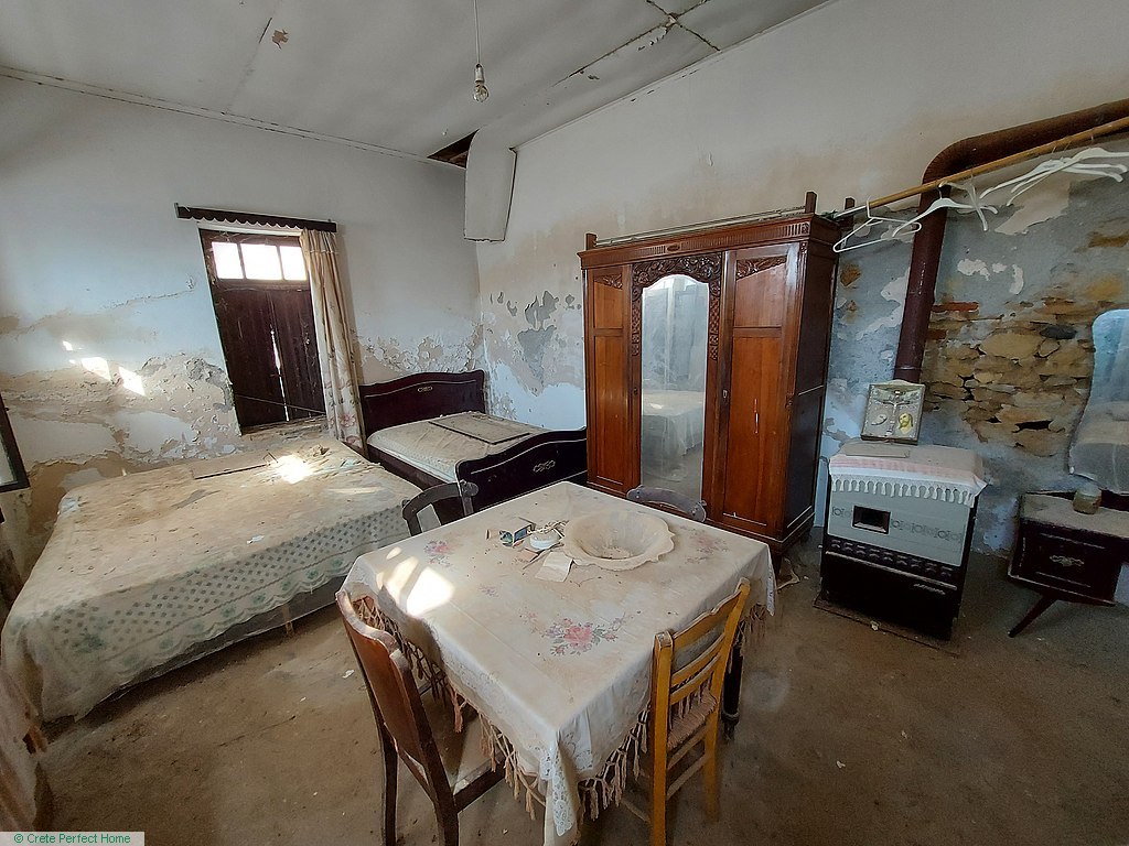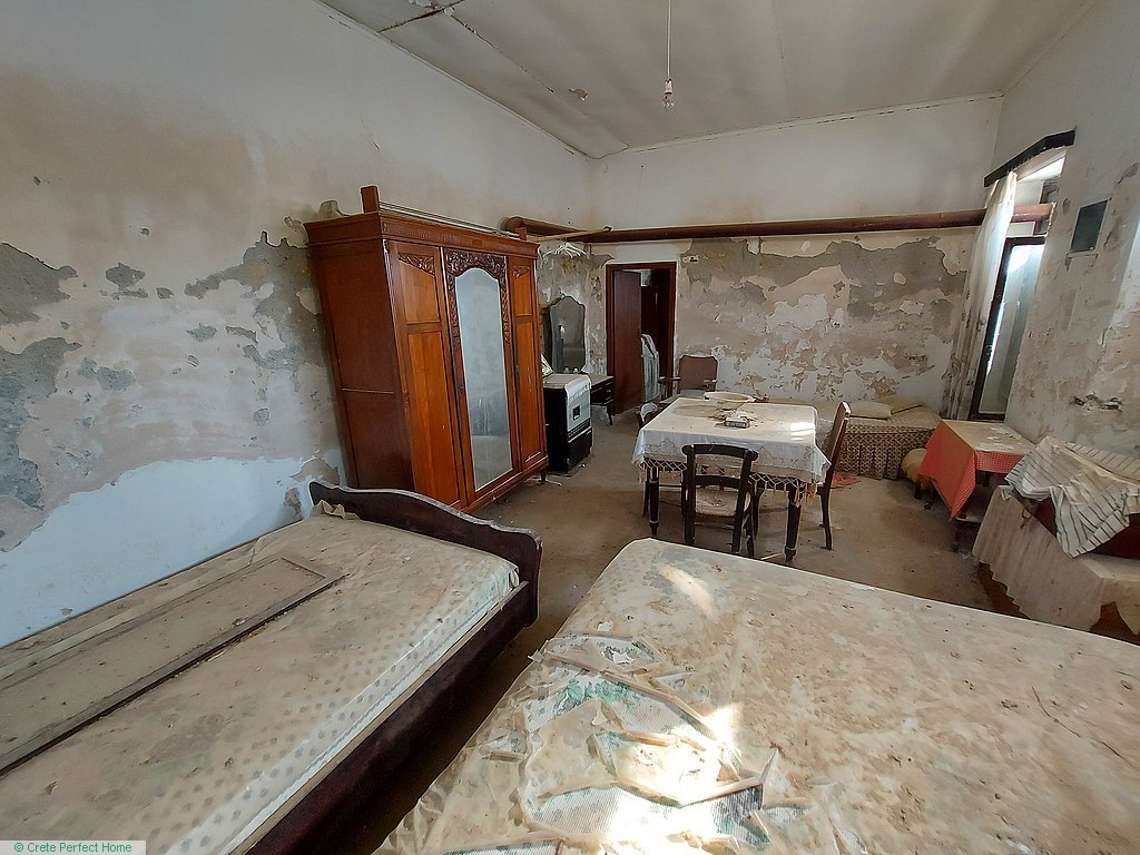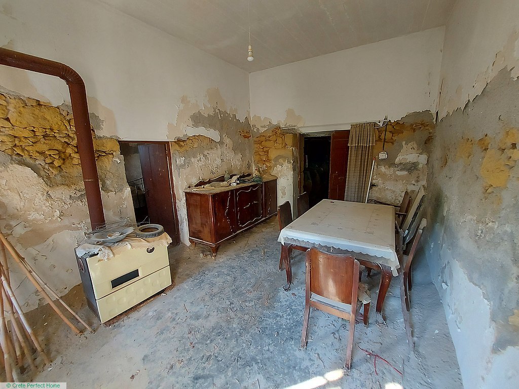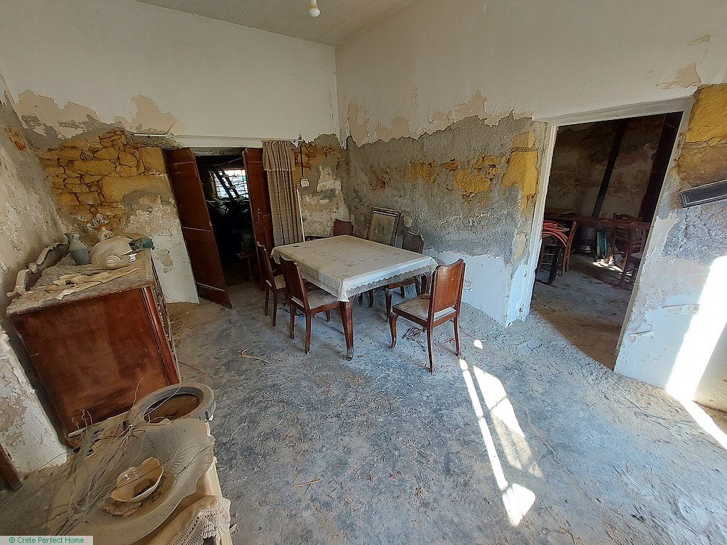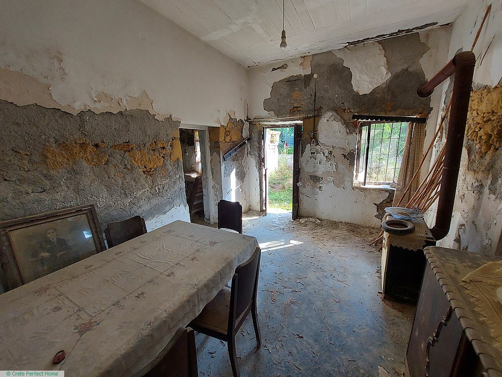 (Renovation) 149m2 6-room stone house in 312m2 plot, further 91m2 build allowance, rural views, 10 minutes Kolymbari, 30 minutes Chania. Good road access, all services nearby.