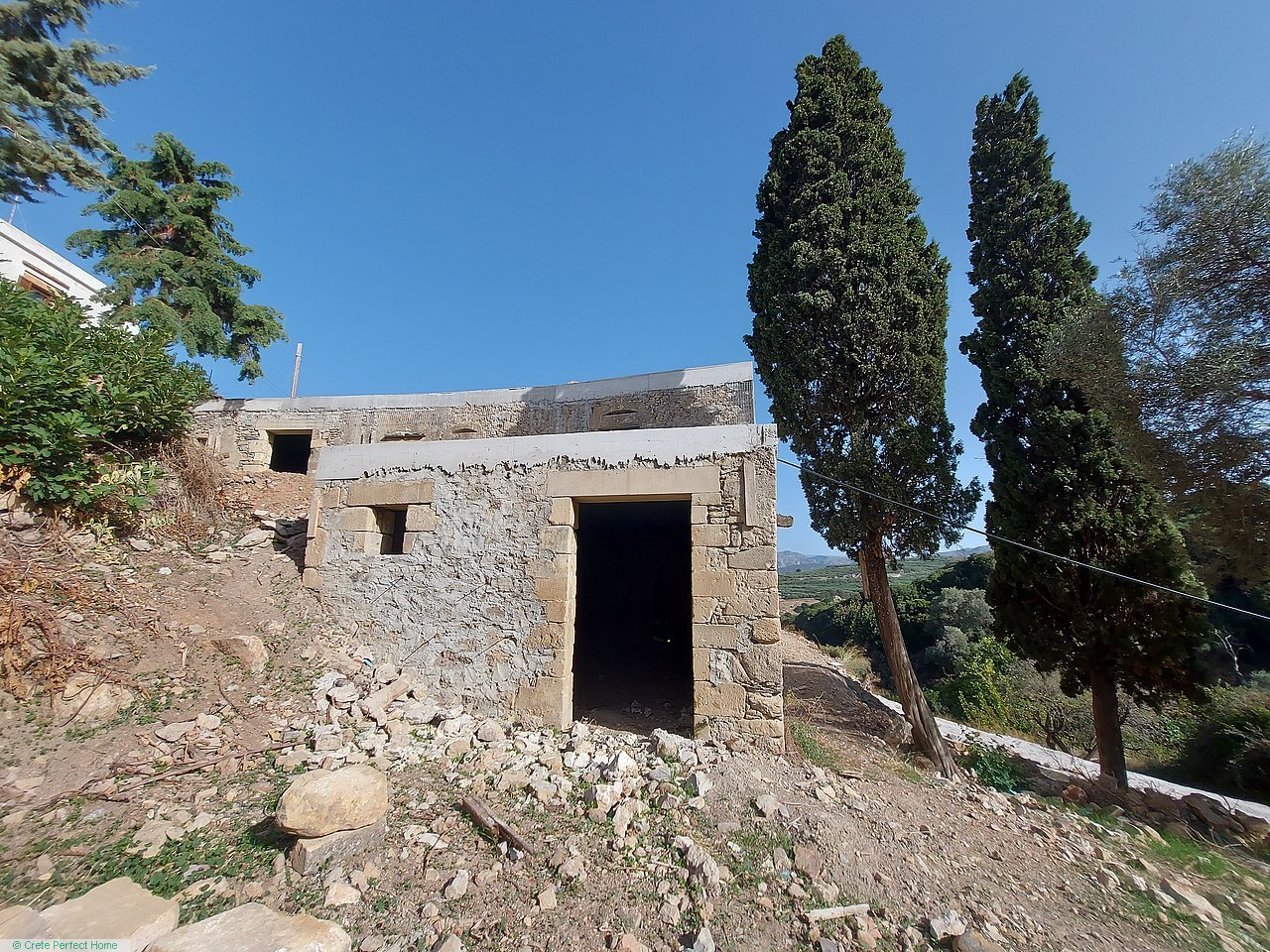 The property lies in a large plot in an elevated hamlet 6kms from the sea, 10 minutes from the shops and facilities of Kissamos, and 35 minutes from the bustling Venetian city of Chania.